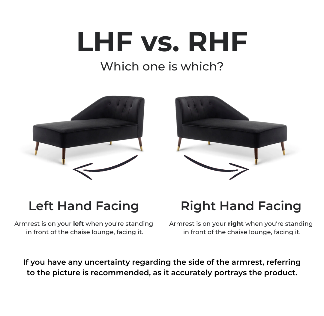 Please note that the left-hand facing orientation is determined when facing the chaise lounge. If the armrest is on your left-hand side, it is left-hand facing.
