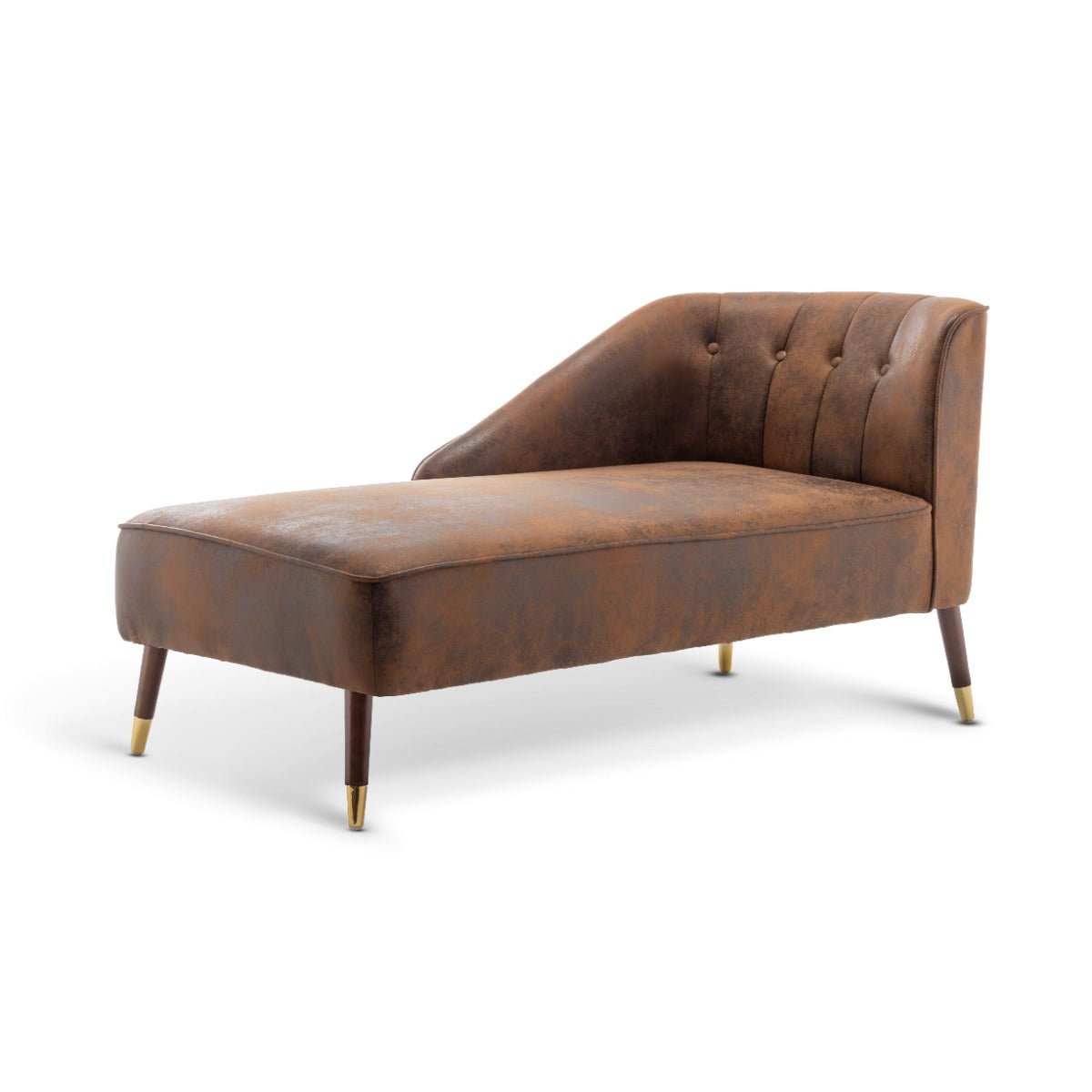 The Faux Leather Suede Brown Marilyn Chaise Lounge – Left-Hand Facing is the epitome of elegance and style, providing a luxurious and decorative addition to your living space. Its sleek and modern design adds a touch of sophistication to the room, and is complemented by the faux leather suede material. Whether you use it as a statement piece in your living room or as a comfortable place to lounge and relax, this chaise lounge chair is sure to impress.