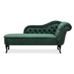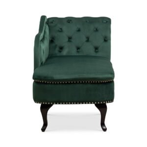 Introducing the Velvet Bottle Green Monroe Chaise Lounge from Stunning Chairs – a beautiful and stylish addition to any living space. This chaise lounge chair features a buttoned back and armrest, and is upholstered in luxurious and eye-catching polyester velvet fabric that adds a touch of sophistication to your decor. The pocket sprung seats offer exceptional levels of comfort, while the hardwood frame provides stability and durability.