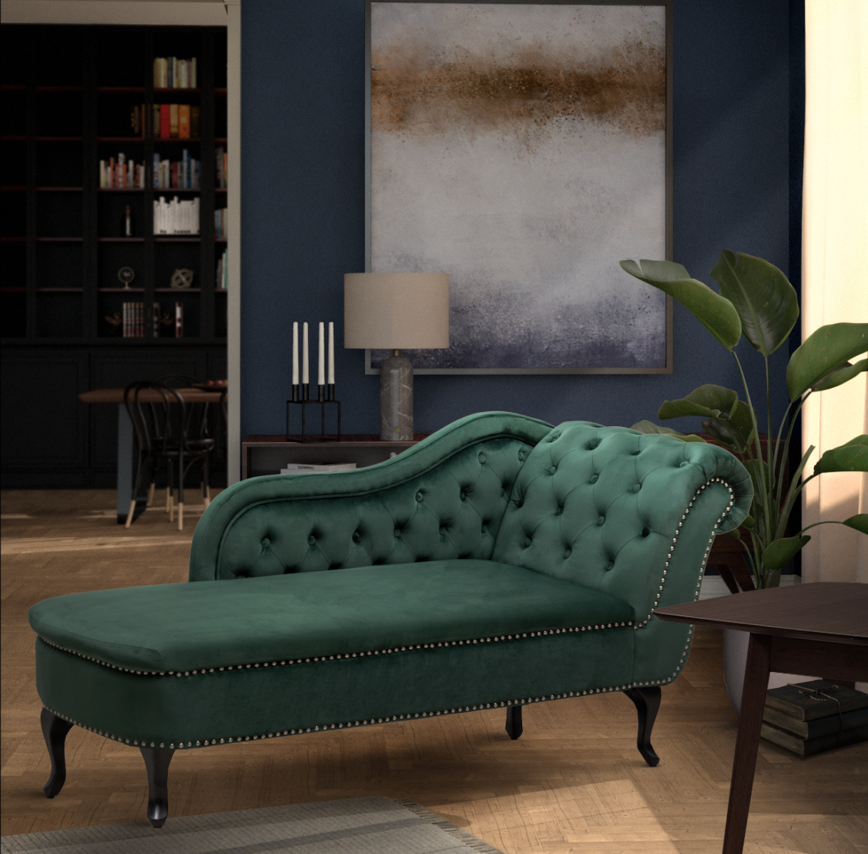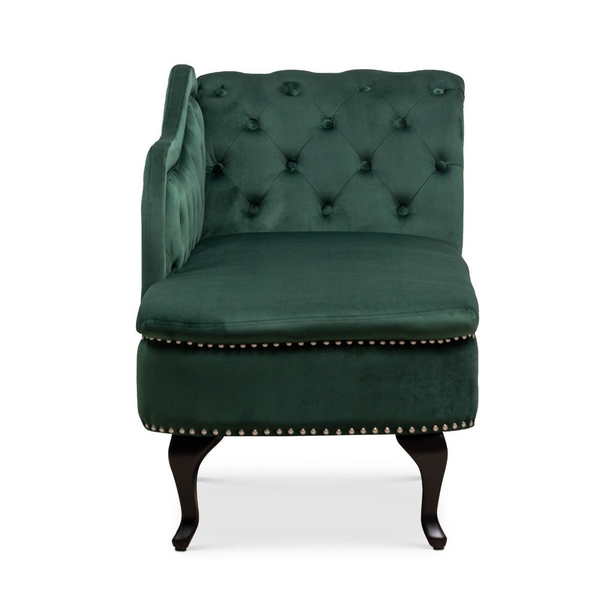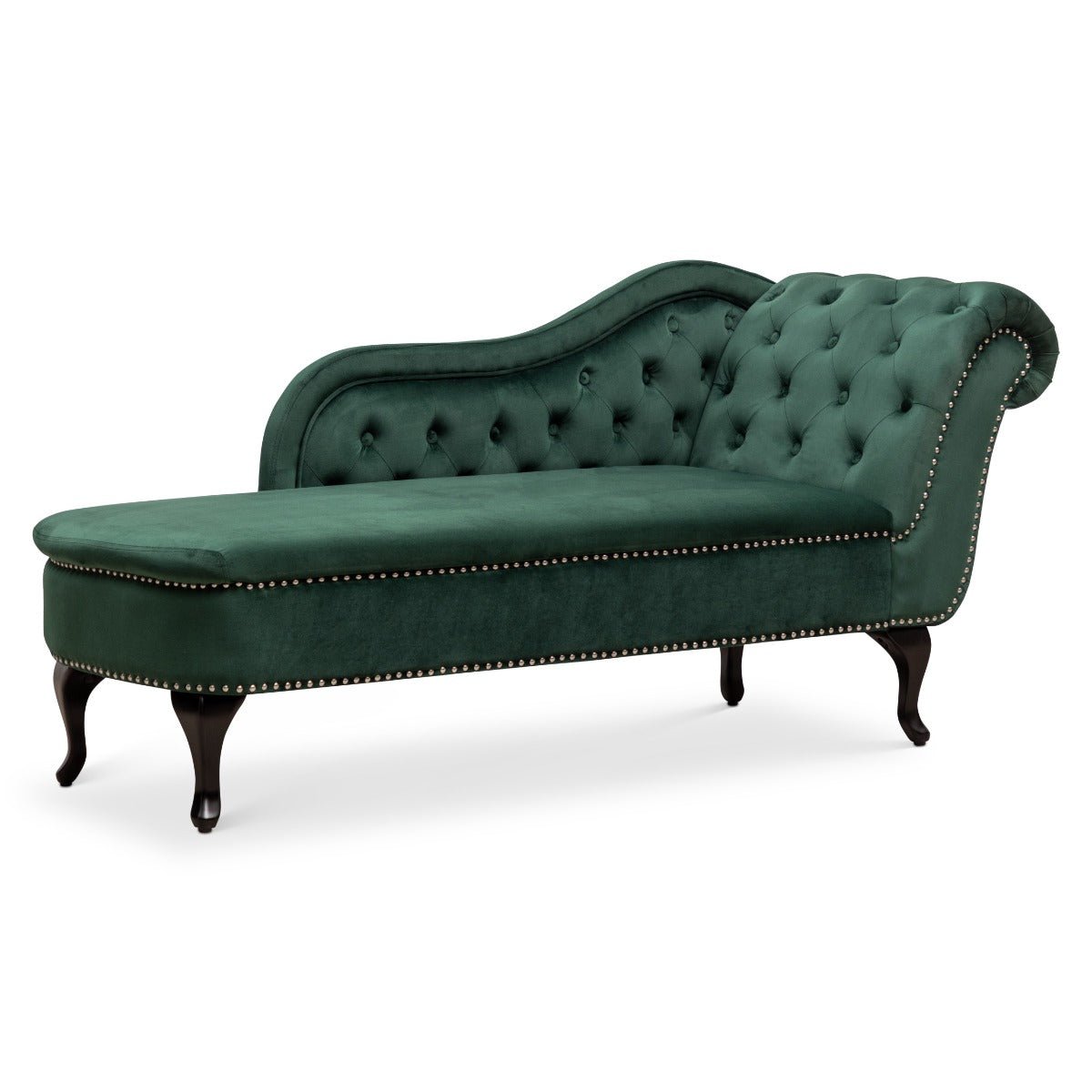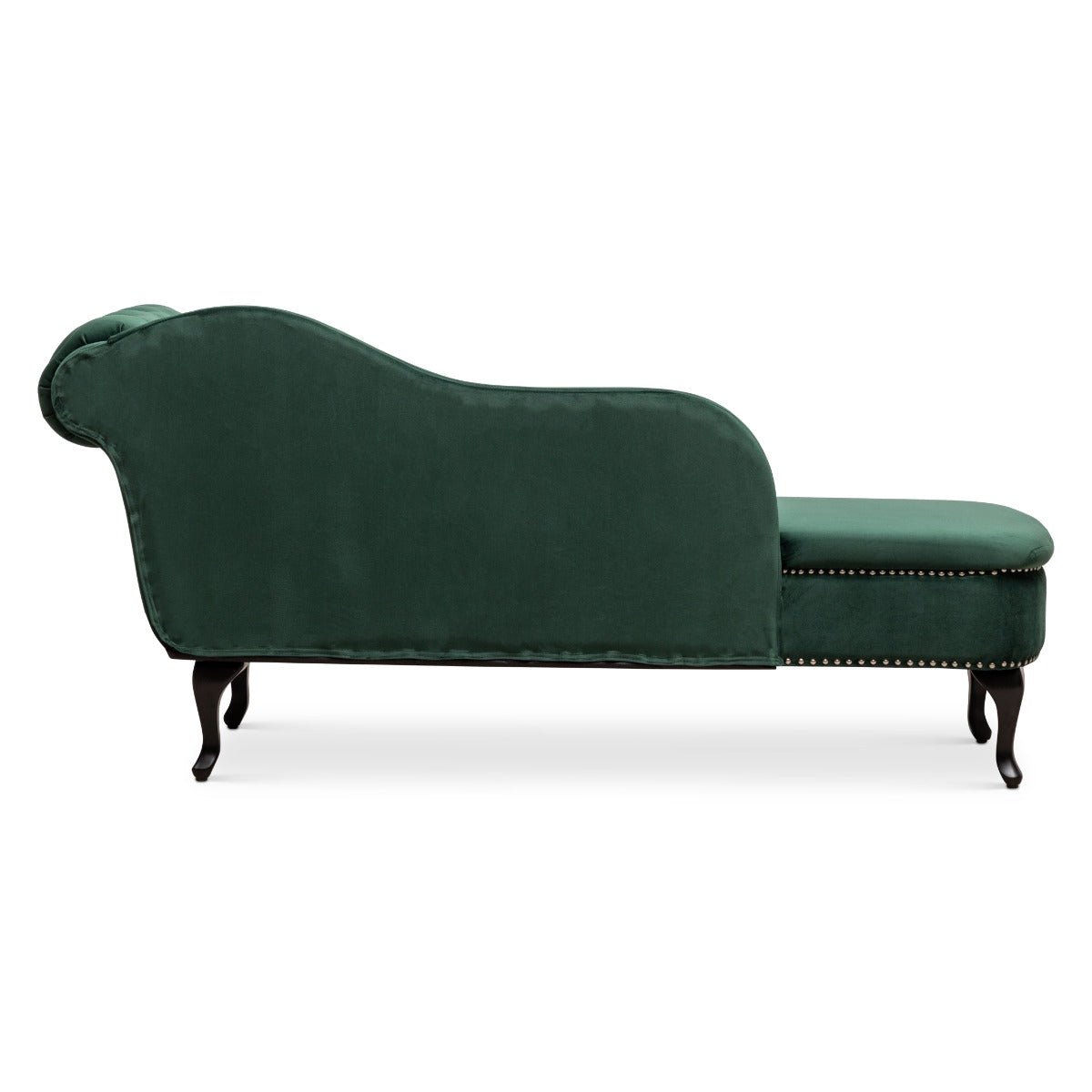 Upgrade your living space with the stunning Velvet Bottle Green Monroe Chaise Lounge and experience the elegance and comfort of Stunning Chairs.